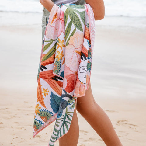 • Sand free towel- Encased in a zipped wet bag in Standard/Large size.